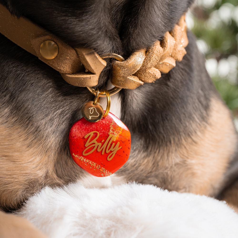 Ontdek de perfecte mix van stijl en functionaliteit met onze handgemaakte hondentags, vervaardigd met hoogwaardige polymeerklei en afgewerkt met een duurzame laag epoxyhars.